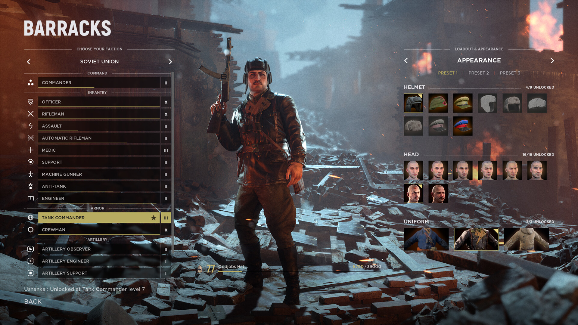 Forces Soviétique - Uniforme pour les rôles suivant: officier, fusilier, soldat d'assaut, soldat antichar, médecin, ingénieur, soutien, mitrailleur, fusilier automatique, sniper, observateur.